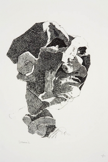 | Artist information: | Leonard Tshehla Mohapi Matsoso (b. 1949, Pimville, Johannesburg) is a South African Postwar & Contemporary artist renowned for his explorations of African myth, history, and identity. His work often depicts hybrid figures; half human, half beast, reflecting psychological tension, cultural memory, and elemental African forces. Matsoso studied at the Jubilee Art Centre (1962–1969) under influential artists such as Cecil Skotnes, Sydney Kumalo, Bill Hart, and Ezrom Legae, and later with Bill Ainslie in Johannesburg (1972). From the early 1970s, Matsoso gained recognition in South Africa and internationally, participating in group shows in the United States and being selected for the Venice Biennale (1972) and the São Paulo Bienal (1973), where he won the Special Award for Drawing. His early black-and-white conte works, including The Agony and the Beast (1973) and Figure (1973), highlight fantastical figures drawn from African tribal history and mythology, executed with meticulous cross-hatching and stippling to evoke tactile, sculptural forms. In the late 1970s and early 1980s, Matsoso’s practice expanded to monumental depictions of historical and heroic figures, combining African traditions and post-colonial identity with vivid color and geometric plasticity. Matsoso’s work is represented in major South African collections, including the Constitutional Court Art Collection (CCAC). His contributions to the CCAC engage with the Court’s mandate to preserve memory, justice, and democracy, offering visual narratives that reflect South Africa’s social and political histories. Through his art, Matsoso continues to assert the enduring relevance of cultural heritage and collective memory within contemporary discourse. References