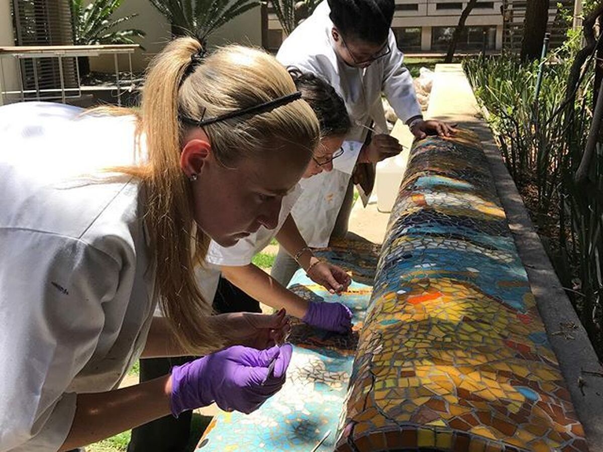 Marco Cianfanelli, Bench in memory of Judge Didcott, 2004. Constitutional Court Art Collection. Photograph by Francois Lion-Cachet © Constitutional Court Trust. Ceramics conservator and Tangible Heritage Conservation lecturer Isabelle McGinn and her students undertook the conservation treatment of the bench in 2019. They repaired parts of the broken ceramics and cleaned the artwork which is permanently installed in the court's gardens.