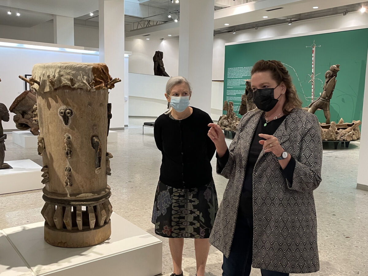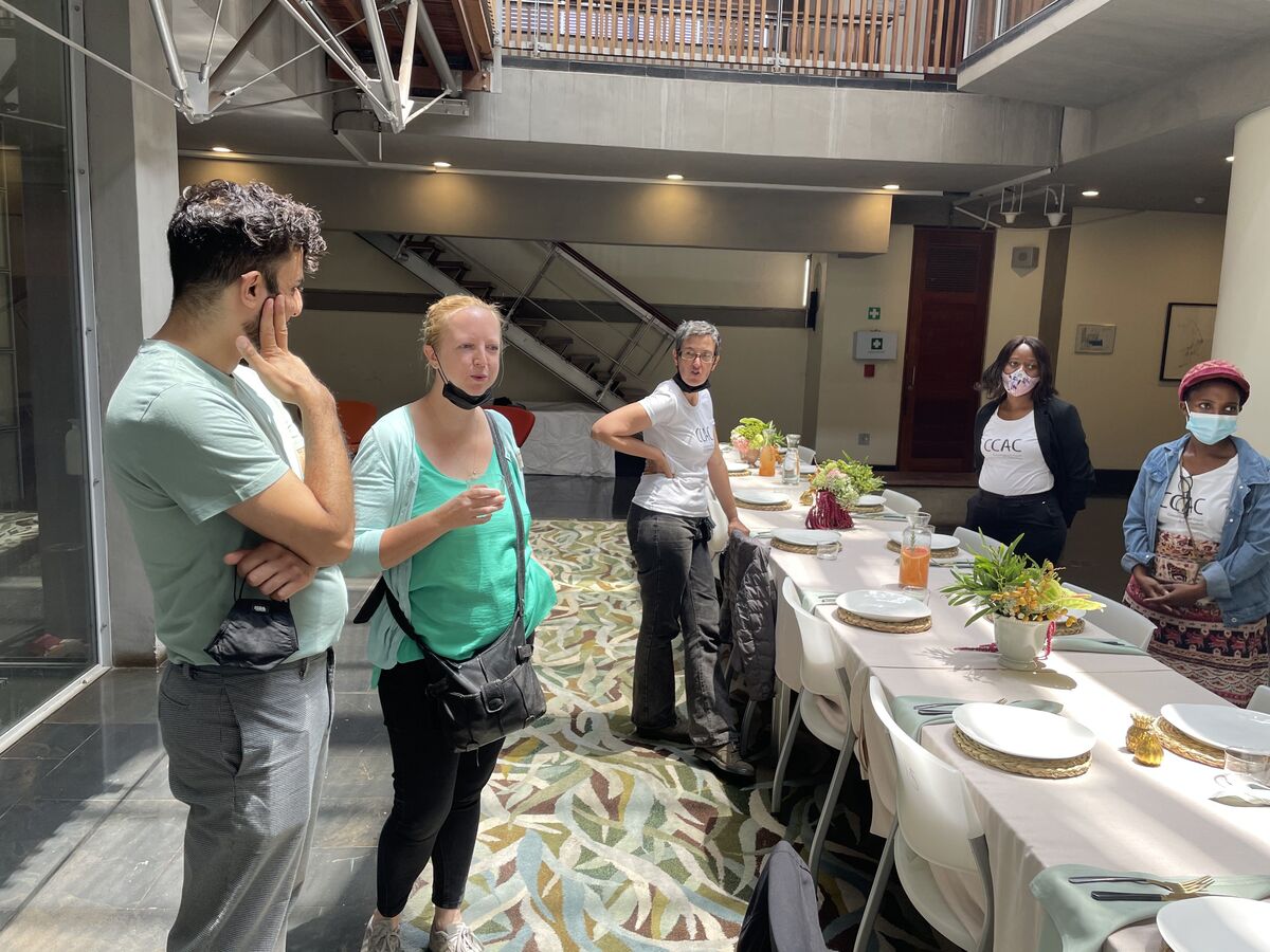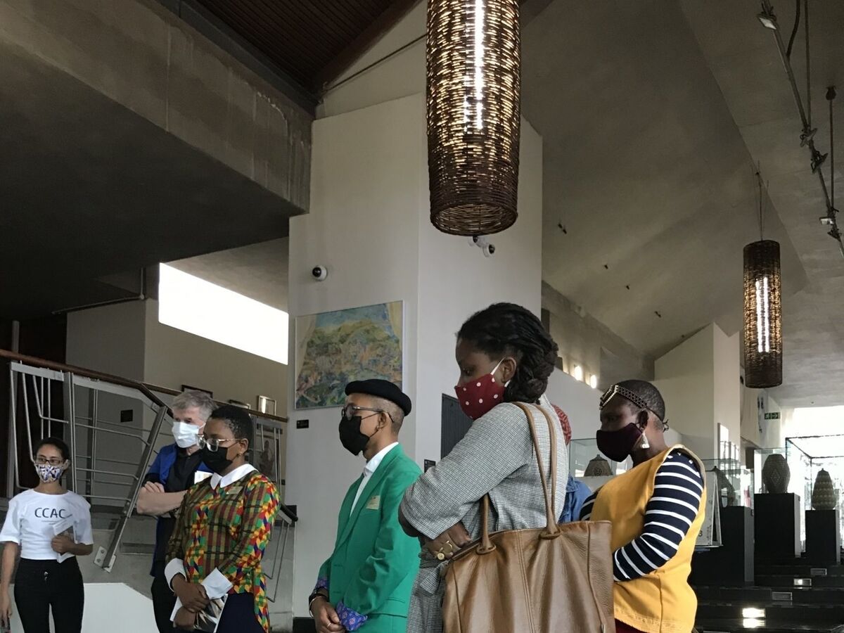 On 17 February 2022, master weaver Angeline Masuku and her daughter Nokukhanya Khumalo joined the curatorial team for a three-day long engagement, touring museums and galleries in Pretoria and Johannesburg namely the Ditsong National Museum of Cultural History, Javett-UP Art Centre, Wits Art Museum and Johannesburg Art Gallery. The tours focused on Zulu basketry in museum collections and served to motivate the exchange of expertise and insight on the care and conservation of these baskets. The curatorial team facilitated the introduction of Angeline and Nokukanya, who is also a weaver, to Gauteng-based curators at these institutions who care for such basketry and other grass-based objects. Following the tours, the curatorial team hosted the curators and colleagues from Constitution Hill and the Gay and Lesbian Archive for an intimate lunch at the Constitutional Court followed by a walkabout of the CCAC and a vote of thanks by Angeline Masuku.